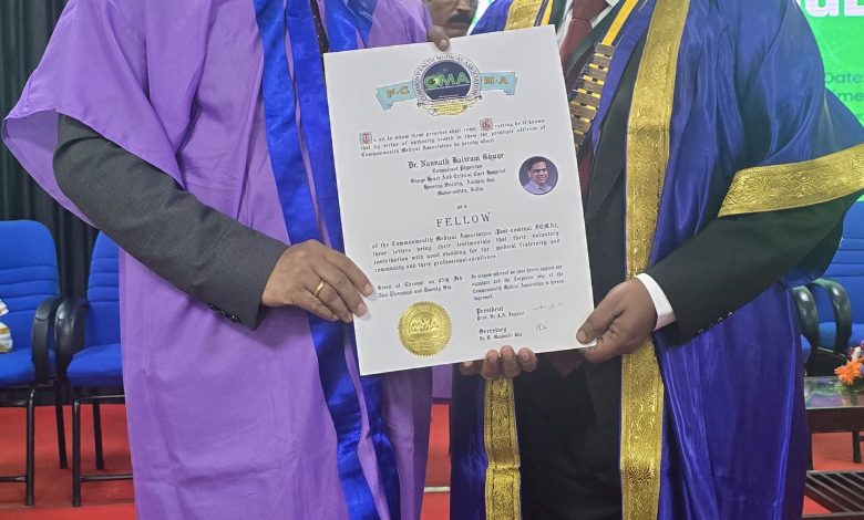 कॉमनवेल्थ मेडिकल असोसिएशन लंडन या आंतरराष्ट्रीय संस्थेच्या फेलोशिपने ह्दयरोग तज्ञ डॉ.नवनाथ घुगे सन्मानित