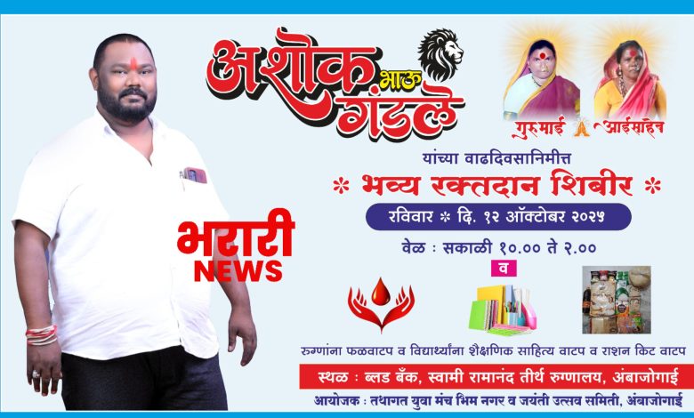 अंबाजोगाई : ( भरारी न्युज ) अंबाजोगाई शहरातील सर्वसामान्य जनतेच्या मनात आपुलकीचं स्थान मिळवलेले आणि सामाजिक क्षेत्रात कार्याचा ठसा उमटवणारे अशोक भाऊ गंडले यांचा ४५ वा वाढदिवस अंबाजोगाई शहरात मोठ्या उत्साहात, जल्लोषात आणि सेवाभावाच्या ध्येयाने साजरा होत आहे. या वाढदिवसाचे वैशिष्ट्य म्हणजे भव्य रक्तदान शिबिर, शैक्षणिक साहित्य वाटप, राशन किट वितरण आणि रुग्णांना फळवाटप अशा सामाजिक उपक्रमांची मालिकाच आयोजित करण्यात आली आहे. हा उपक्रम येत्या रविवार, दिनांक १२ ऑक्टोबर २०२५ रोजी सकाळी १० ते दुपारी २ वाजेपर्यंत स्वामी रामानंद तीर्थ रुग्णालय, अंबाजोगाई येथील ब्लड बँक येथे पार पडणार आहे. “रक्तदान हीच जीवनदानाची खरी साधना” या भावनेने आयोजित करण्यात आलेल्या या शिबिरामध्ये मोठ्या संख्येने तरुणाई, विद्यार्थी, व्यापारी आणि सामान्य नागरिक सहभागी होणार असून, या निमित्ताने अनेक रुग्णांना नवजीवन मिळणार आहे. त्याचबरोबर गरजू विद्यार्थ्यांना शैक्षणिक साहित्य वाटप व गोरगरिबांना राशन किट देऊन अशोक भाऊ गंडले यांनी समाजातील सर्व घटकांपर्यंत सेवा पोहोचवण्याचा आदर्श ठेवला आहे. अंबाजोगाई शहरातील प्रत्येक गल्ली-बोळात “भाऊंचा वाढदिवस” साजरा करण्याचे वातावरण निर्माण झाले आहे. सामाजिक कार्याच्या बळावर आणि प्रहार संघटनेच्या माध्यमातून जनतेचा लाडका चेहरा बनलेले अशोक भाऊ गंडले यांनी आतापर्यंत शेकडो सामाजिक उपक्रम राबवले आहेत. त्यांच्या कार्यामुळे असंख्य निराधारांना मदतीचा हात मिळाला असून, त्यांच्या कार्यशैलीतून “सामाजिक जबाबदारी म्हणजे फक्त बोलणे नव्हे तर कृतीतून दाखवणे” हा संदेश समाजाला मिळतो. अशा या धडाकेबाज, जनतेच्या मनातील, आणि सेवाभावाचा ध्यास घेतलेल्या अष्टपैलू कार्यकर्त्याचा वाढदिवस समाजोपयोगी कार्यातून साजरा होत असल्याने अंबाजोगाई शहरभर कौतुकाचा वर्षाव होत आहे. रक्तदान करणाऱ्या प्रत्येक दात्याचे अमूल्य योगदान शेतकऱ्यापासून ते सीमावरील जवानांपर्यंत अनेकांच्या जीविताचे रक्षण करणारे ठरणार आहे. त्यामुळे या उपक्रमात सहभागी होणे हे प्रत्येक नागरिकाचे सामाजिक कर्तव्य आहे, असा संदेश देखील या निमित्ताने दिला जात आहे.